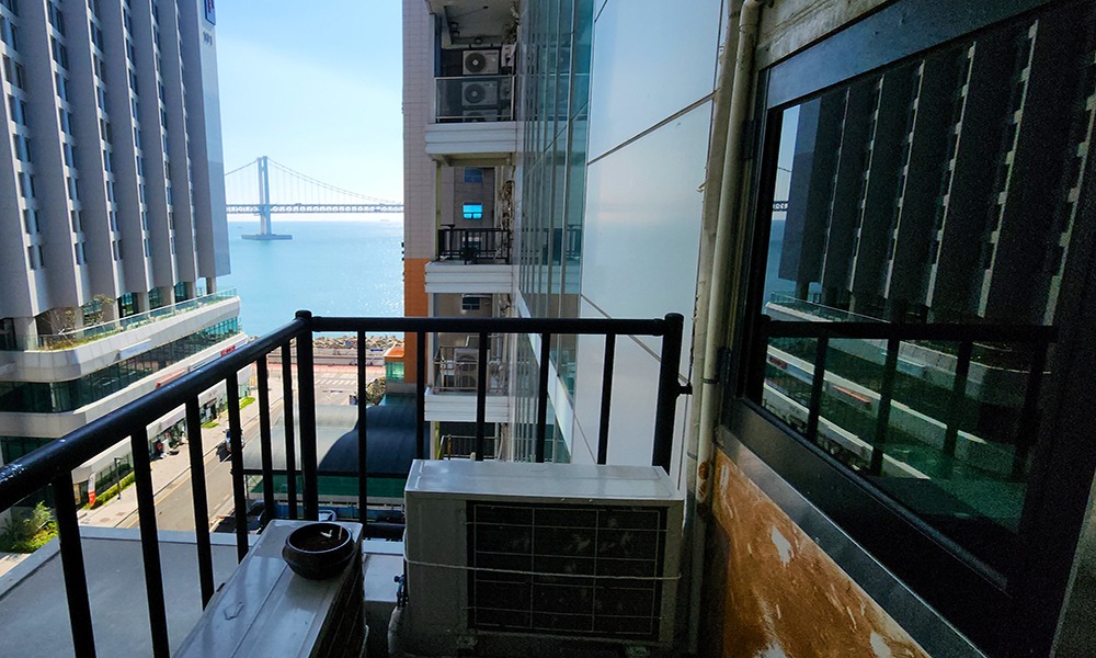 프론트 데스크 뒤편에 마련된 전용 흡연 테라스입니다.